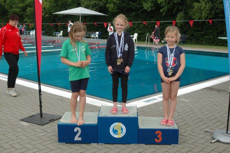 Hier wird den Kleinsten die Gelegenheit gegeben, erstmals Wettkampfluft über eine Strecke von 25 m zu schnuppern berichtet Trainerin Jana Selina Weindok. Volker Busse, der mit Lisa Busse die Siegerehrungen vornahm, ergänzt: Alle Teilnehmer und Teilnehmerinnen des kindgerechten Wettkampfs erhalten neben den Medaillen für die Sieger auch Teilnehmermedaillen. Jedes Kind wird belohnt!