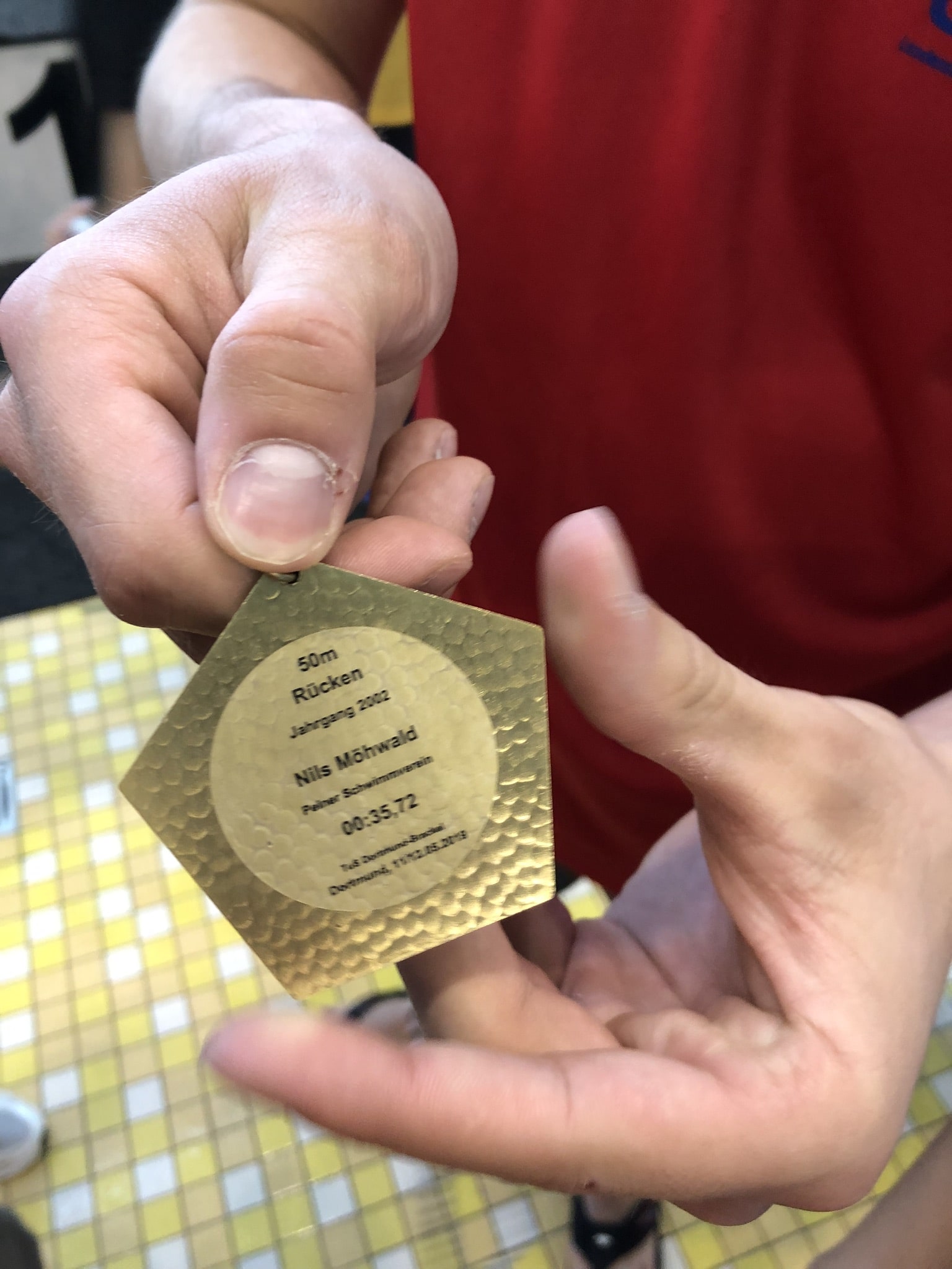 Etwas Pech hatte Chris Schwarznecker: Er verpasste eine Bronzemedaille über 50 m Rücken in seiner Altersklasse 1998 und älter um genau eine hundertstel Sekunde!