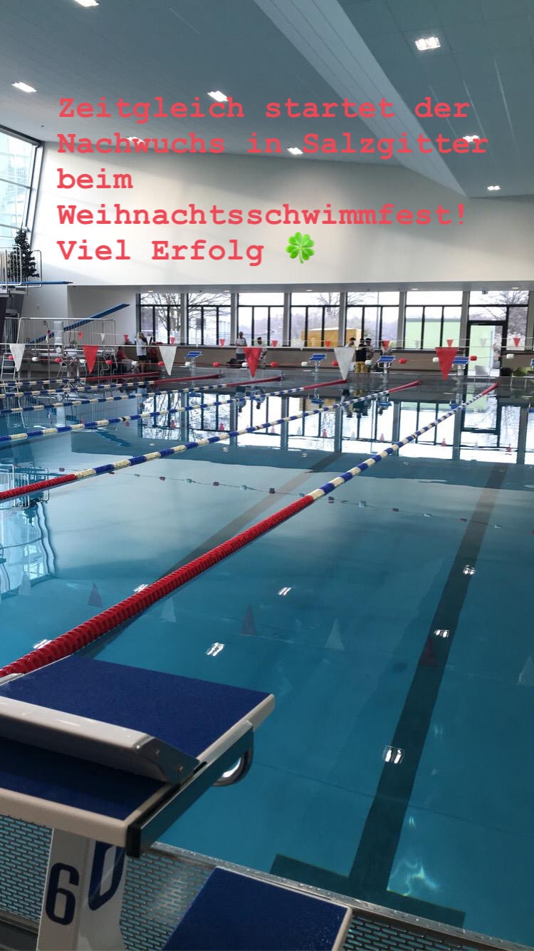 Zeitgleich starteten unsere Nachwuchsschwimmer/innen am Sonntag in Salzgitter beim Weihnachtsschwimmfest. Gleich zu Beginn sicherte sich die Mannschaft über die 4x50m Lagen weiblich in der Besetzung Franziska Schindler, Mavie Poersch, Sunny Helbing und Carla Alpers den dritten Platz. Starke Leistungen zeigten dabei alle Peiner Athleten mit vielen neuen Bestzeiten. Am Start waren: Antonia Linke, Arkadiy Rese, Carla Alpers, Erik Zeffler, Franziska Schindler, Georg Linke, Jana Weindok, Jaron Jasken, Luca Puschmann, Mavie Poersch, Milla Kummer, Moritz Möller und Sunny Helbing.