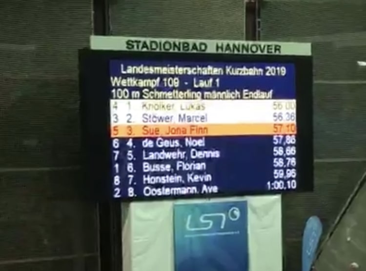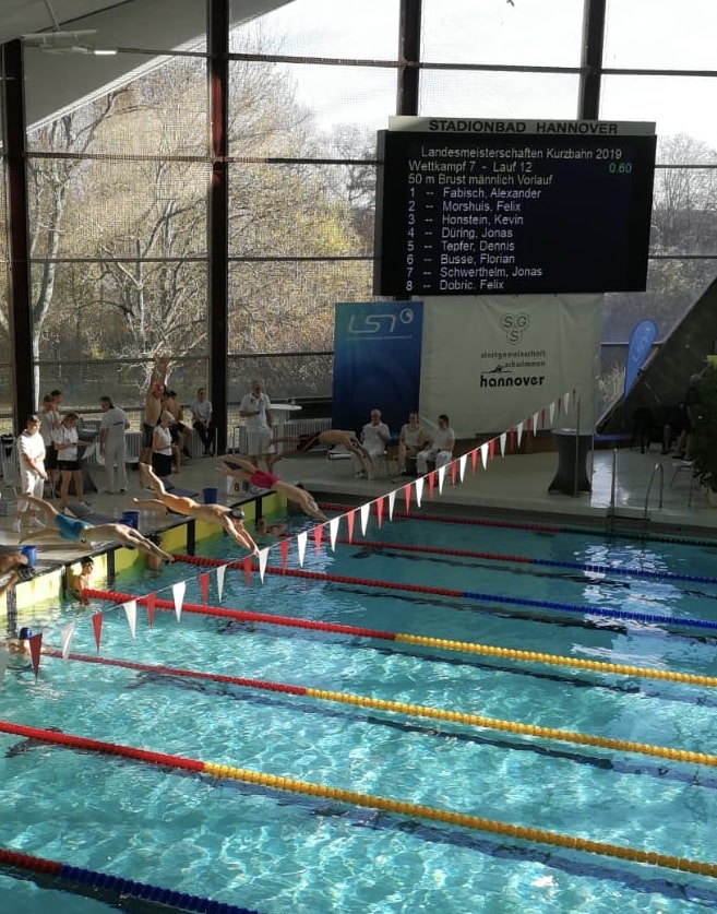 Stark in Form zeigten sich Florian Busse, Malte Kern, David Schell und Paul Coblenz bei den Landeskurzbahnmeisterschaften in Hannover. Für Florian standen am Samstag die 50m Brust, 100m Lagen, 200m Schmetterling und 100m Schmetterling auf dem Plan. Über die 100m Schmetterling reichte es in einem starken Feld zu einer Finalteilnahme und Platz 6 mit einem neuen Saisonrekord in 00:58,76. Jeweils persönliche Bestzeit schwammen am Sonntag David über 100m Brust und Malte über 50m Schmetterling, was zu Top20-Platzierungen in den Jahrgangswertungen führte. Paul erreichte über die 400m Freistil einen 9. Platz in der Jahrgangswertung.